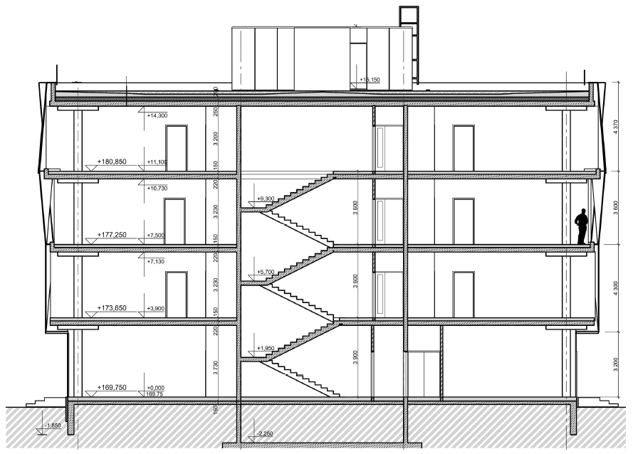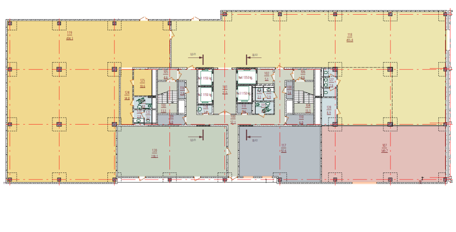 Existence of elevators - Building B4: 4 elevators 3 - cargo-passenger, loading capacity - 1275 kg, number of passengers - 17 people; 1- cargo, loading capacity is 2000 kg; number of passengers - 26 people. Building P1: 2 elevators 1 - cargo-passenger, loading capacity - 430 kg .; 1- cargo-passenger, loading capacity - 630 kg