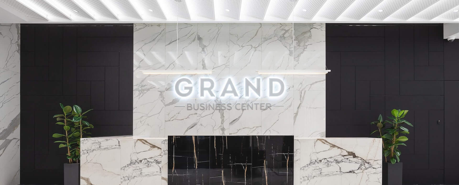 Бизнес-центр А класса насчитывает 14 этажей по которым курсируют 4 скоростных лифта фирмы Otis. Офисы в БЦ Гранд имеют отличные видовые характеристики на ул. Б. Васильковская и Костел Св. Николая. Ближайшими соседями являются: БЦ Торонто, БЦ Олимпийский, Офисный центр ул.Деловая, 5Б. Вблизи офисного центра расположены многочисленные рестораны, кафе и банки.